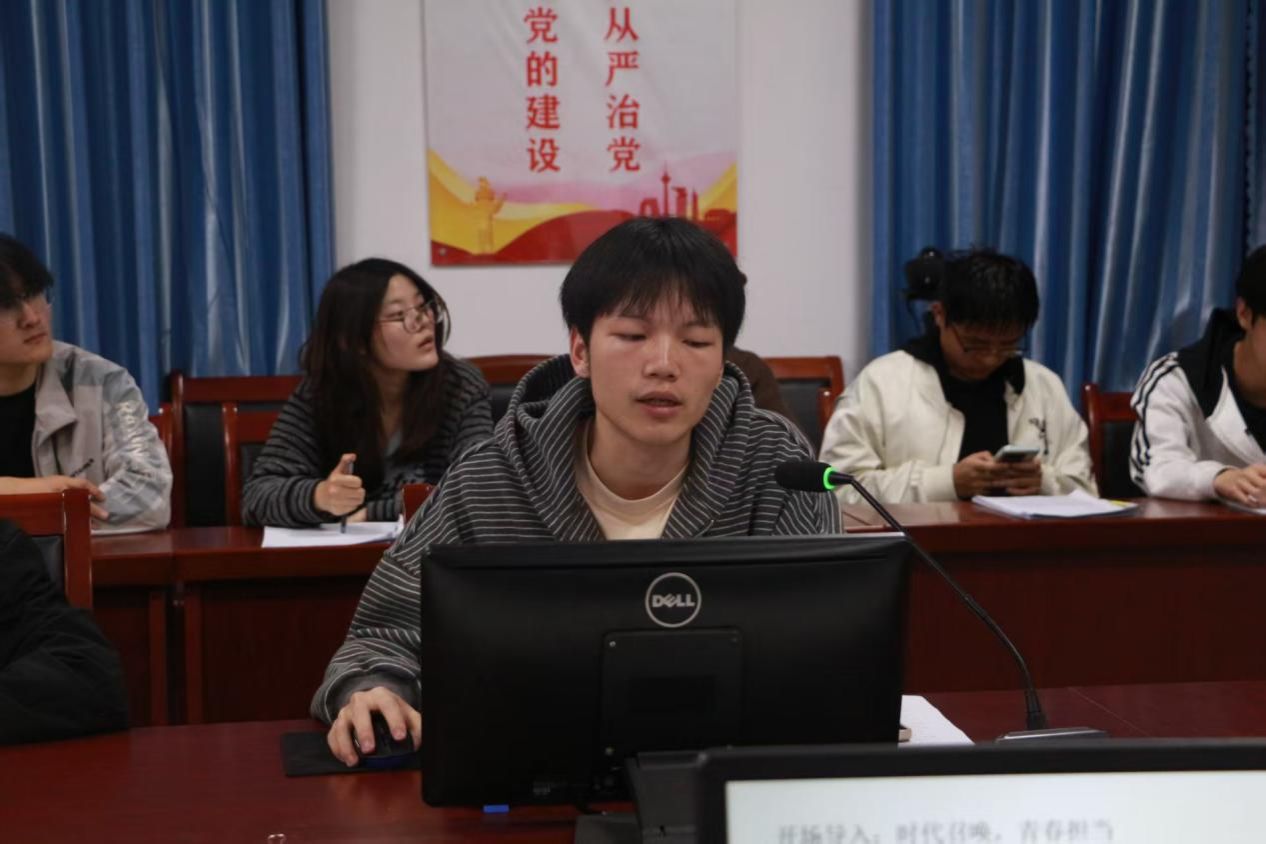 为深入推进党建带团建工作,强化青年学生理想信念教育与使命担当意识,4月14日,学生党支部组织开展“薪火领航·思想讲堂”主题宣讲活动,学生党员曾凌云以“青春向党·强国有我”为主题主讲,2024、2025级入团积极分子参与。