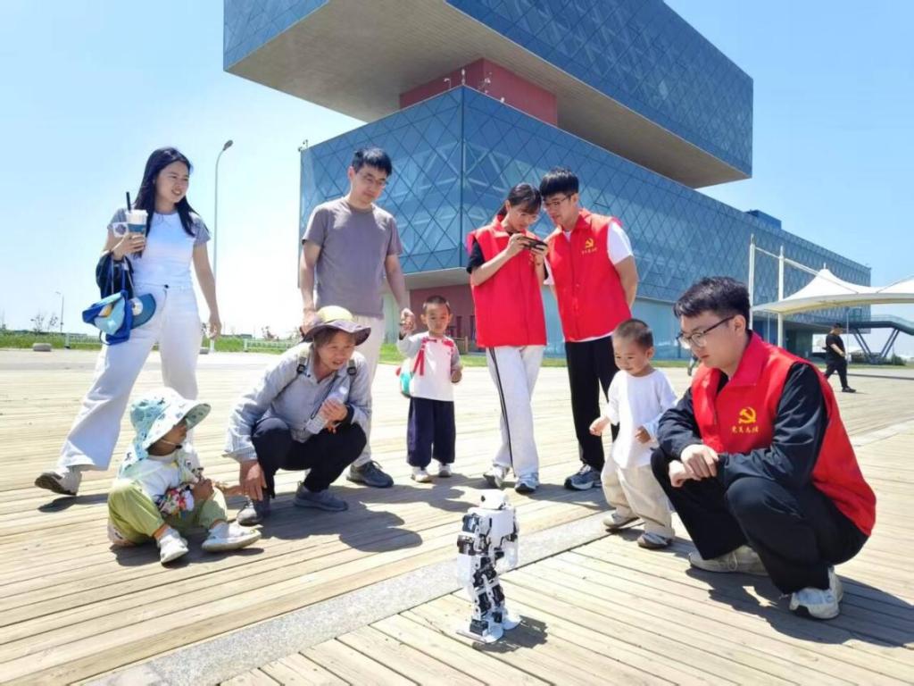 活动伊始,党员先锋志愿服务队率先为游客们展示了智能机器人,它们灵活的动作和智能的表现瞬间吸引了游客的目光。志愿者们不仅详细讲解了机器人的工作原理,还分享了制作过程中的创新点与难点,让游客们近距离感受到了科技带来的无限魅力。